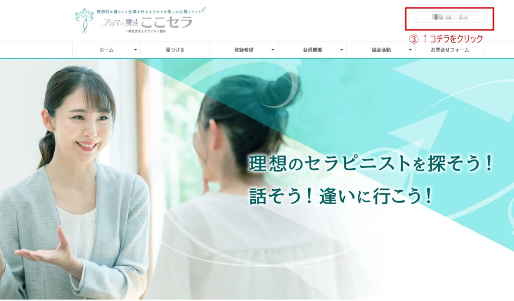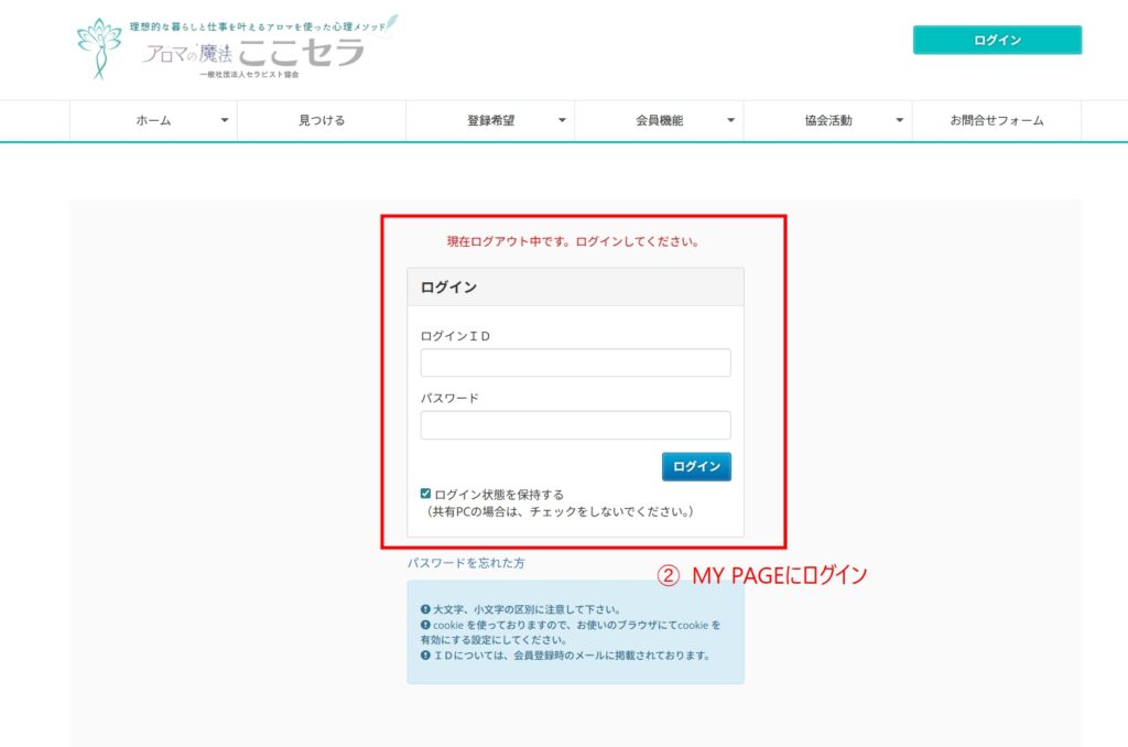 MY PAGEは、ここセラの右上よりログインしてください。