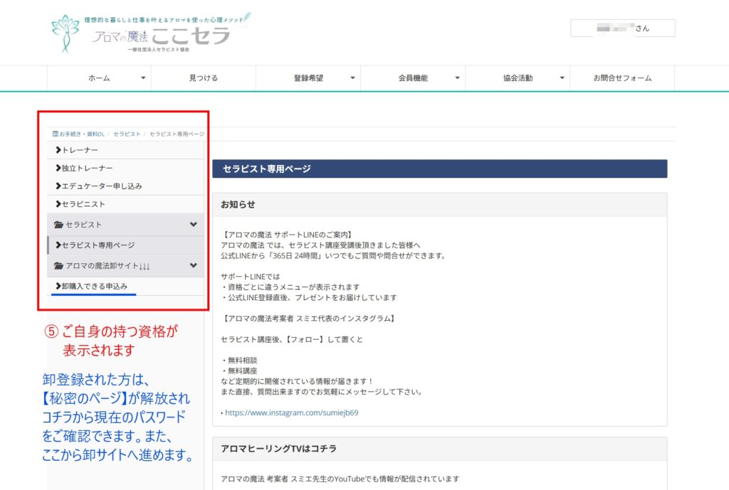 アロマの魔法心理メソッド 資格取得後に1人1人に振り分けられるMY PAGEの使い方