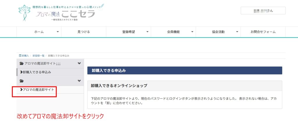改めて 〉アロマの魔法卸サイト をクリック